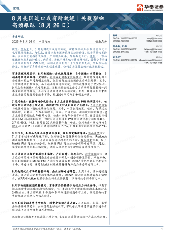 【华泰证券】【202508】8月美国进口或有所放缓|关税影响 高频跟踪-22页 证券期货研究报告