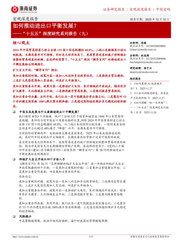 【浙商证券】【202512】如何推动进出口平衡发展?——“十五五”深度研究系列报告(九)-13页 证券期货研究报告