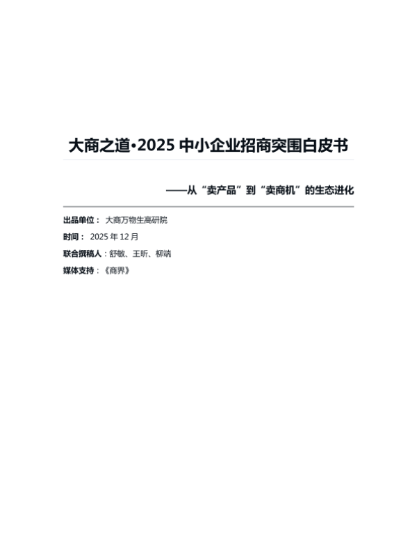 【大商万物生高研院】【202512】2025中小企业招商突围白皮书——从“卖产品”到“卖商机”的生态进化-24页 白皮书