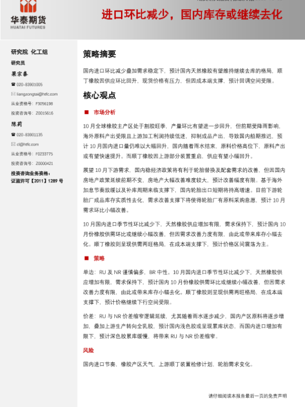【华泰期货】【20231008】橡胶月报:进口环比减少,国内库存或继续去化-18页 行业研究