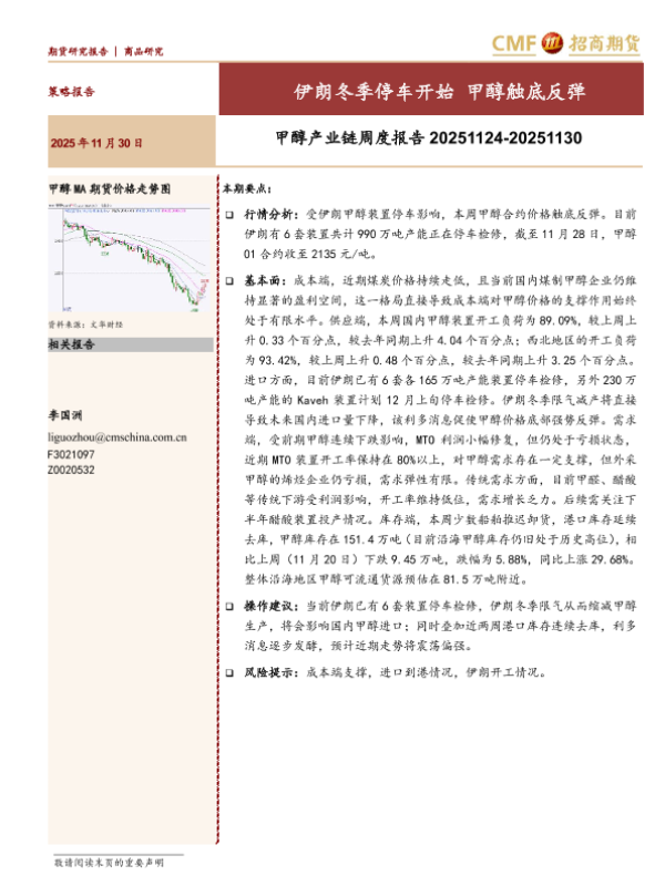 【招商期货】【202511】甲醇产业链周度报告 20251124-20251130-17页 证券期货研究报告