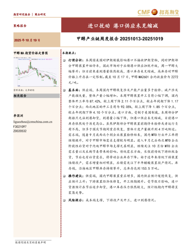 【招商期货】【202510】甲醇产业链周度报告 20251013-20251019-17页 证券期货研究报告