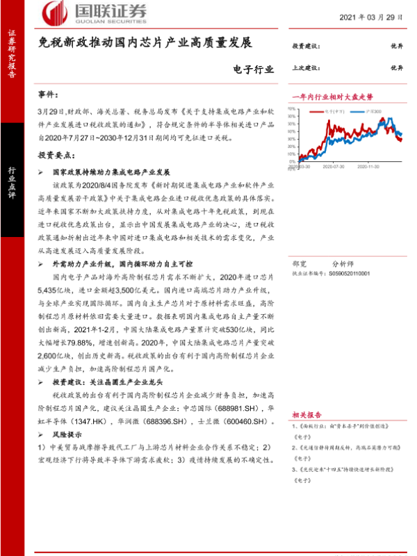 【国联证券】【20210329】免税新政推动国内芯片产业高质量发展-2页 行业研究