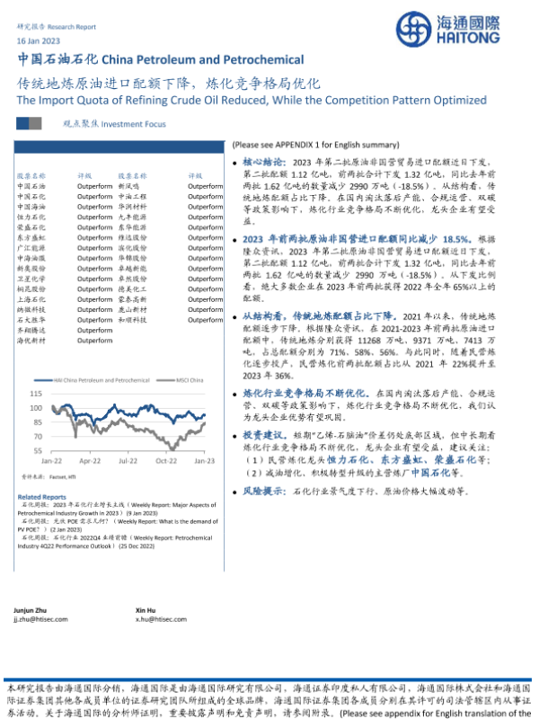 【海通国际】【20230116】中国石油石化:传统地炼原油进口配额下降,炼化竞争格局优化-11页 行业研究