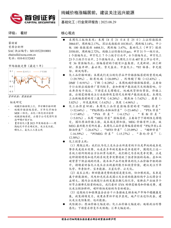 【首创证券】【20230829】基础化工:纯碱价格涨幅居前,建议关注远兴能源-18页 行业研究