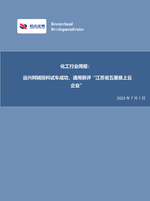 【信达证券】【20230701】20230701-信达证券-化工行业周报:远兴阿碱投料试车成功,通用获评“江苏省五星级上云企业”-30页 行业研究