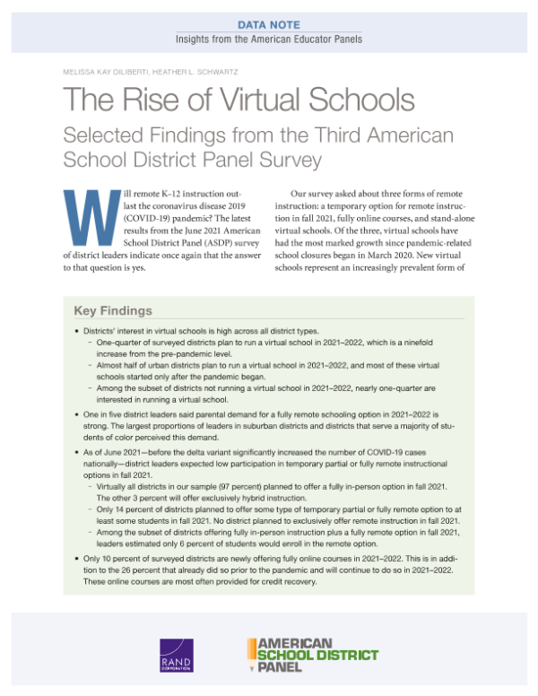 【RAND Corporation】【202108】The Rise of Virtual Schools-13页 行业研究