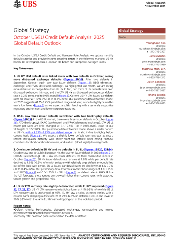 【UBS Securities LLC】【20241107】October US/EU Credit Default Analysis 2025 Global Default Outlook-13页 行业研究