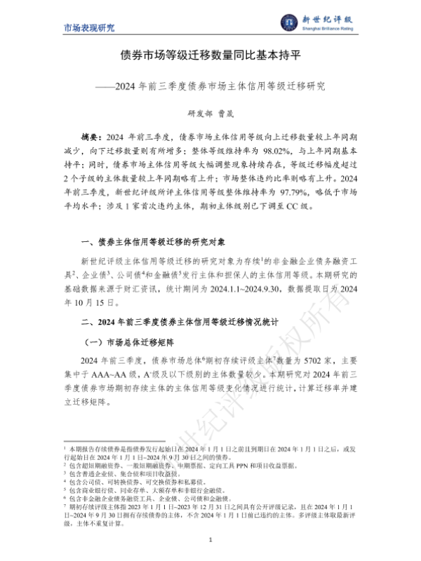 【研发部曹晟】【2024】债券市场等级迁移数量同比基本持平——2024年前三季度债券市场主体信用等级迁移研究-13页 行业研究