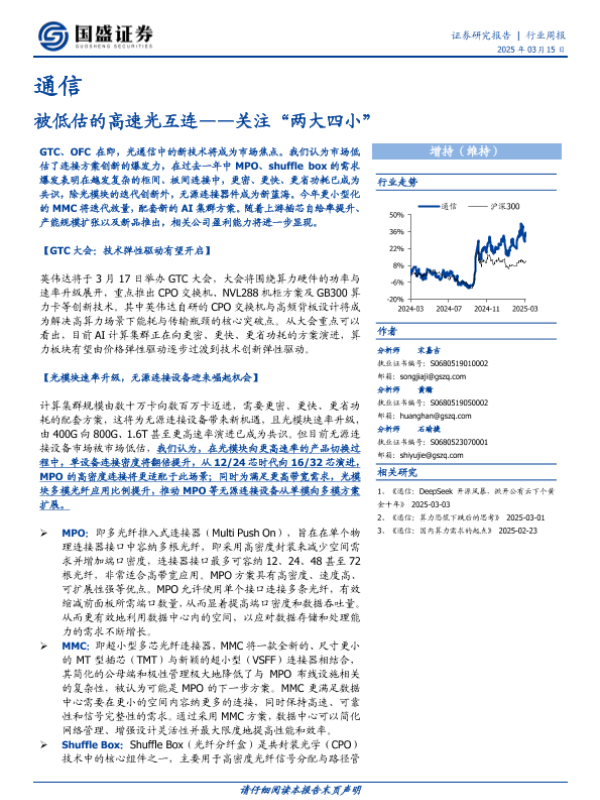 【国盛证券】【20250315】20250315-国盛证券-通信行业周报:被低估的高速光互连,关注“两大四小”-16页 行业研究