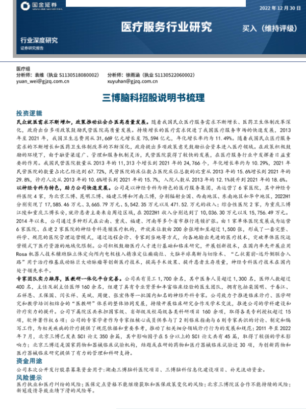 【国金证券】【20221230】医疗服务行业研究:三博脑科招股说明书梳理-17页 行业研究
