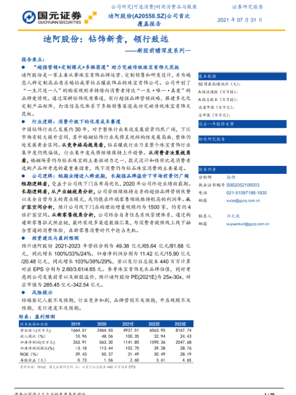 【国元证券】【20210731】迪阿股份:钻饰新贵,领行致远——新股前瞻深度系列一-39页 行业研究