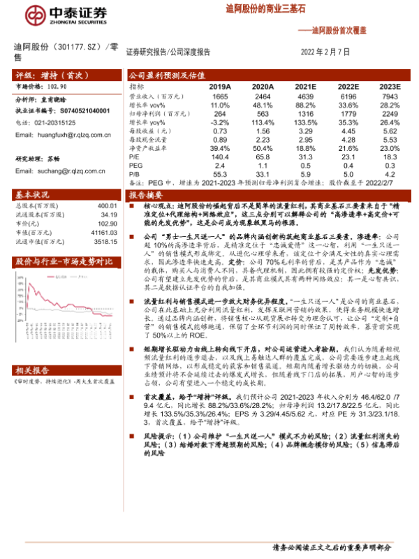 【中泰证券】【20220207】迪阿股份首次覆盖:迪阿股份的商业三基石-26页 行业研究