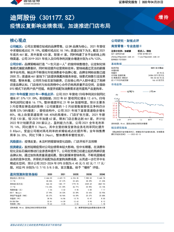 【国信证券】【20220423】疫情反复影响业绩表现,加速推进门店布局-22页 行业研究