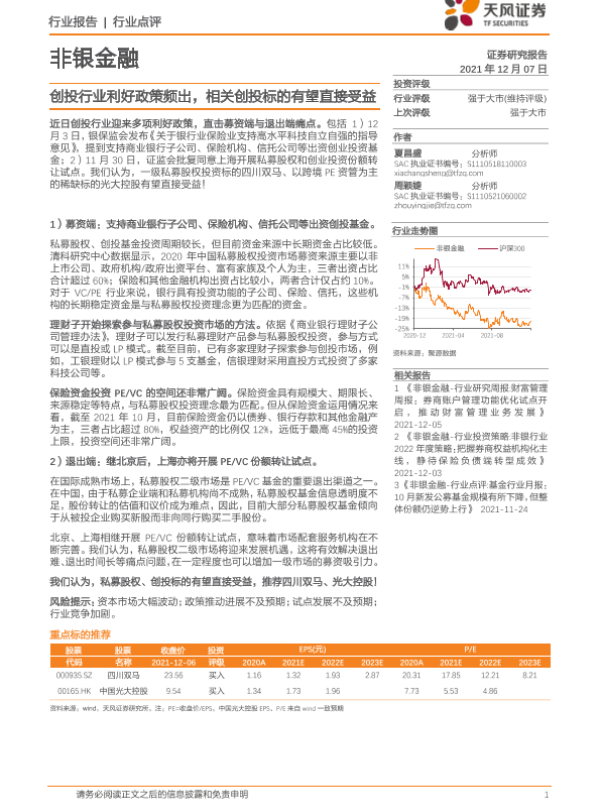 【天风证券】【20211207】非银金融行业点评:创投行业利好政策频出,相关创投标的有望直接受益-2页 行业研究