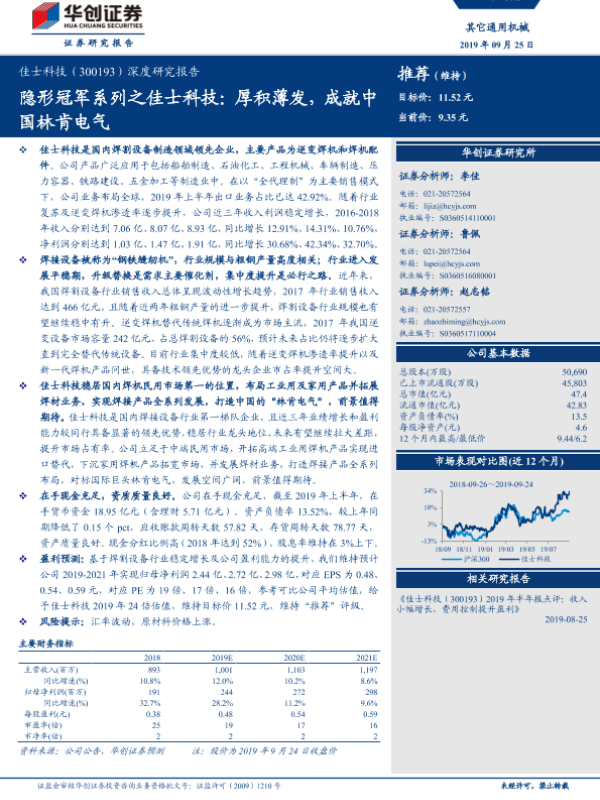 【华创证券】【20190925】隐形冠军系列之佳士科技:厚积薄发,成就中国林肯电气-29页 行业研究