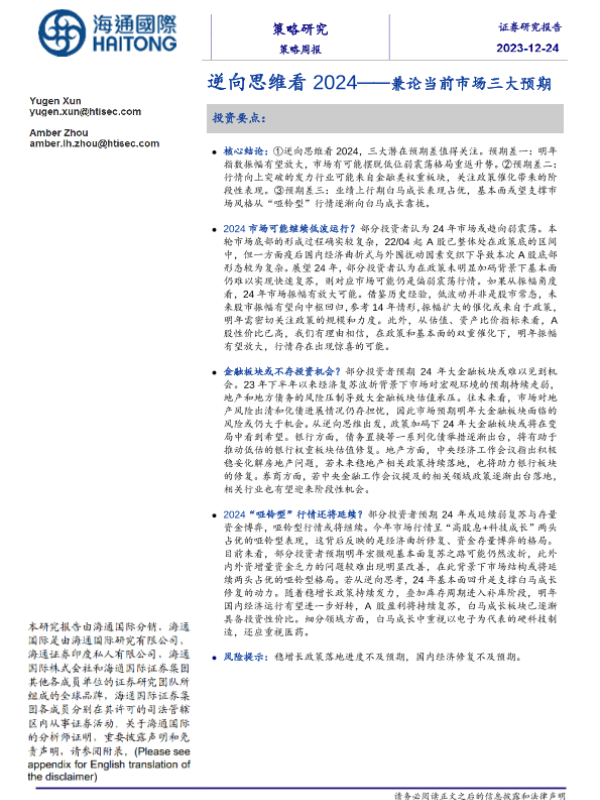 【海通国际】【20231224】逆向思维看 2024——兼论当前市场三大预期-18页 宏观策略
