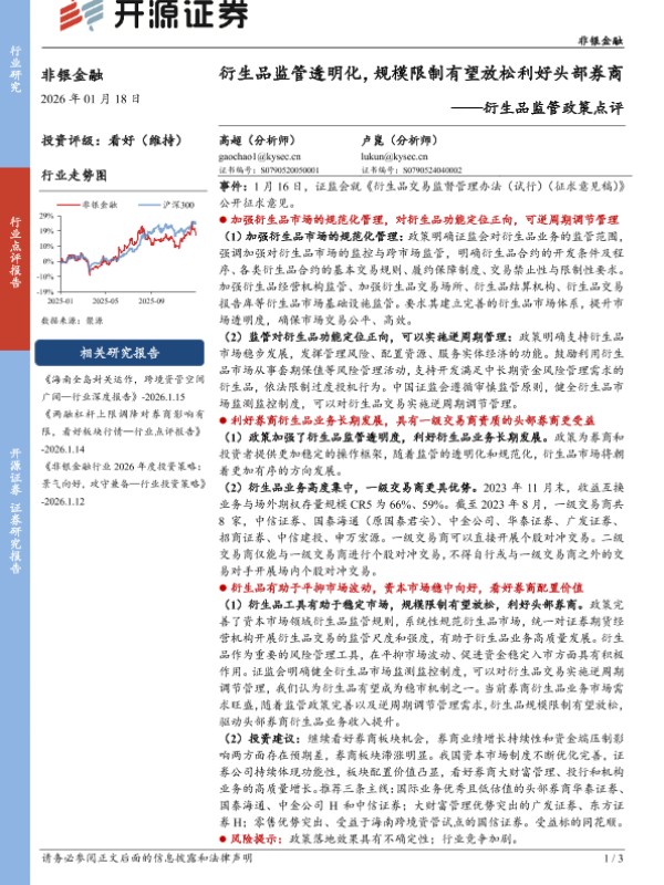 【开源证券】【202601】衍生品监管透明化,规模限制有望放松利好头部券商——衍生品监管政策点评-3页 证券期货研究报告