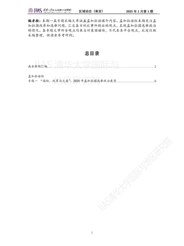 【北京外国语大学孟加拉语专业】【202501】南亚地区《区域动态》2025年1月第1期-“团结、改革与大选”:2025年孟加拉国选举政治展望-9页 行业研究