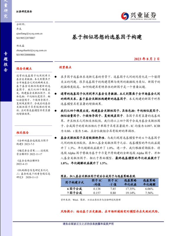 【兴业证券】【20230802】基于相似思想的选基因子构建-23页 行业研究