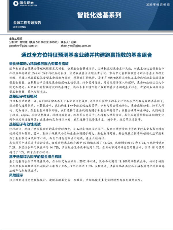 【国金证券】【20230107】智能化选基系列:通过全方位特征预测基金业绩并构建跑赢指数的基金组合-24页 行业研究