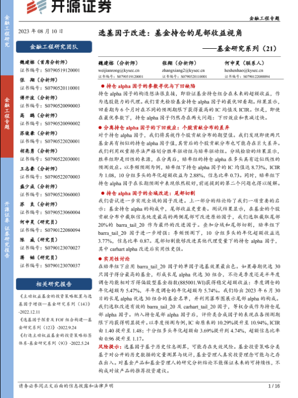【开源证券】【20230810】选基因子改进:基金持仓的尾部收益视角-16页 行业研究
