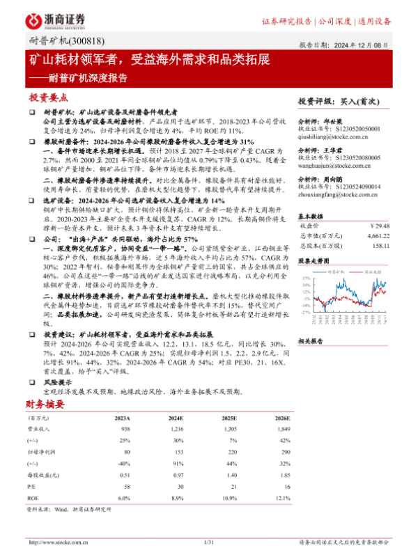 【浙商证券】【20241208】耐普矿机(300818)深度报告:矿山耗材领军者,受益海外需求和品类拓展-31页 行业研究