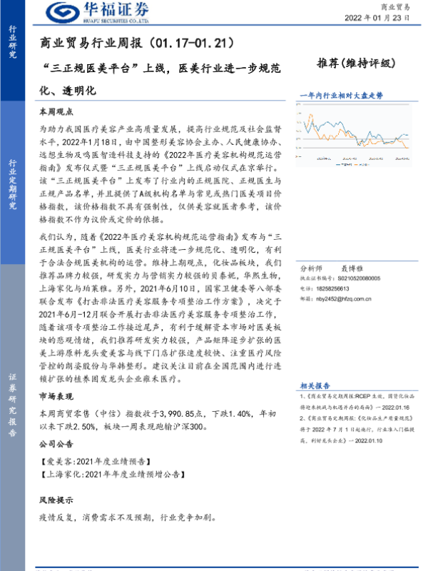 【华福证券】【20220123】商业贸易行业周报:“三正规医美平台”上线,医美行业进一步规范化、透明化-7页 行业研究