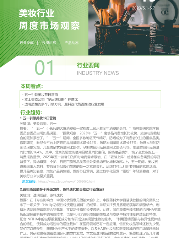 【艾瑞咨询】【20230507】2023年第19周:美妆行业周度市场观察-7页 行业研究
