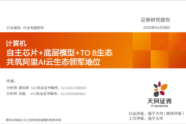 【天风证券】【20250408】计算机行业专题研究:自主芯片+底层模型+TO B生态共筑阿里AI云生态领军地位-25页 证券期货研究报告