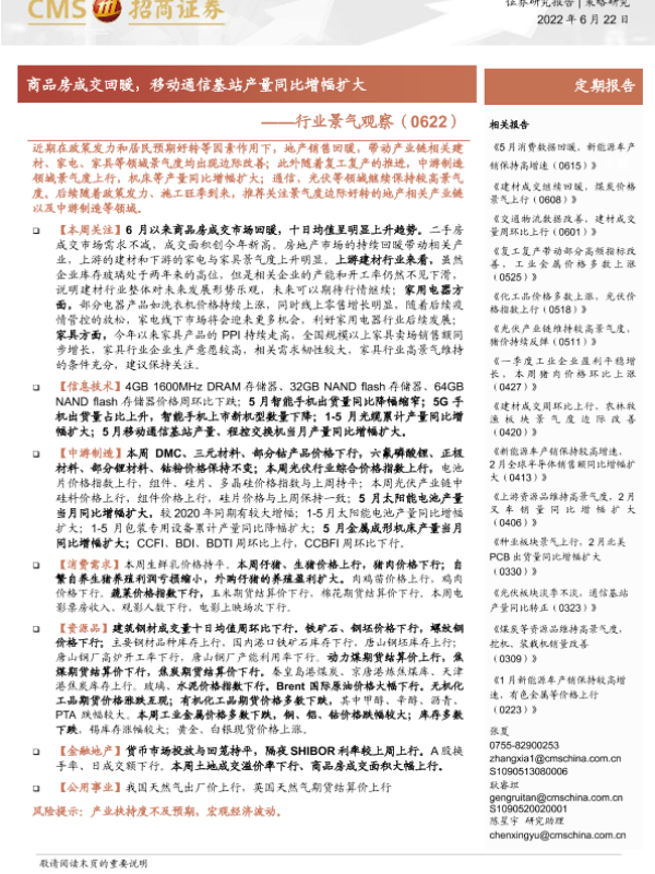 【海通证券】【20220622】行业景气观察(0622):商品房成交回暖,移动通信基站产量同比增幅扩大-31页 行业研究