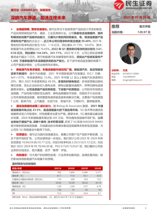 【民生证券】【20220725】瑞可达(688800.SH)深度报告:深耕汽车赛道,加速连接未来-38页 行业研究