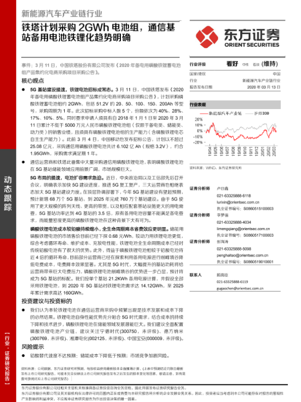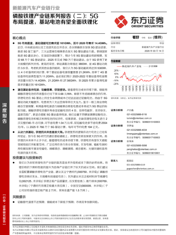 【东方证券】【20200314】磷酸铁锂产业链系列报告(二):5G布局提速,基站电池有望全面铁锂化-16页 行业研究