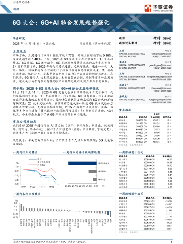 【华泰证券】【202511】科技行业周报(第四十六周):6G大会,6G+AI融合发展趋势强化-17页 证券期货研究报告