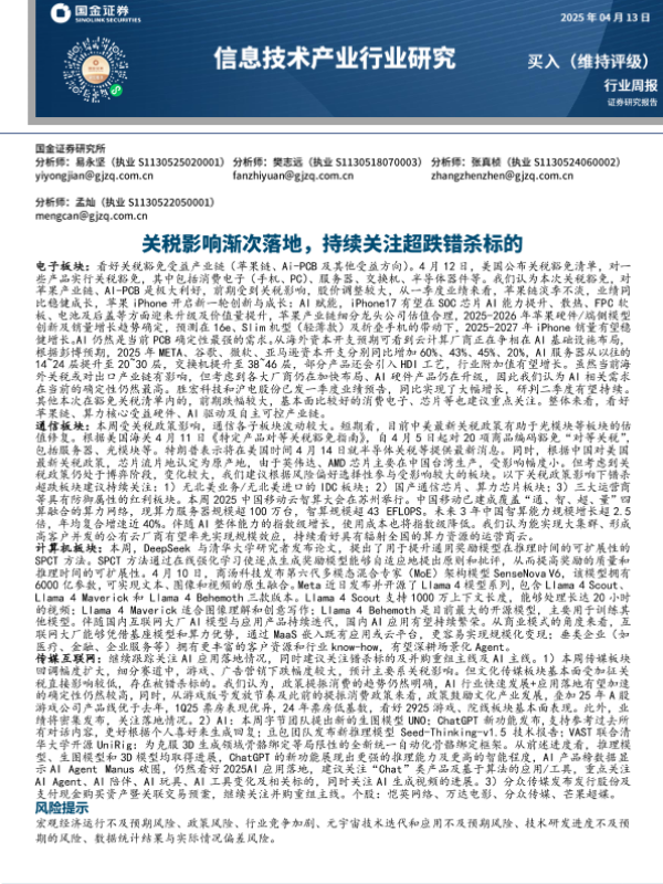 【国金证券】【20250413】信息技术产业行业研究:关税影响渐次落地,持续关注超跌错杀标的-19页 行业研究