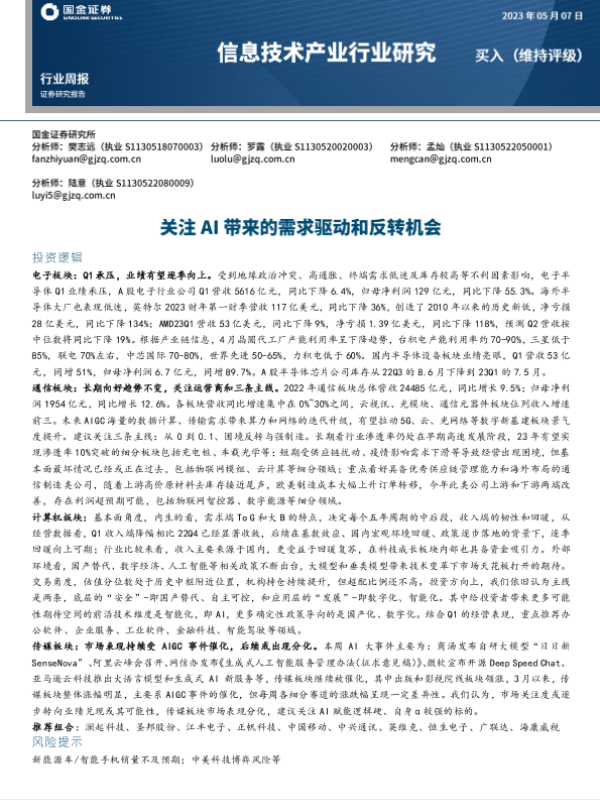 【国金证券】【20230507】信息技术产业行业研究:关注AI带来的需求驱动和反转机会-21页 行业研究