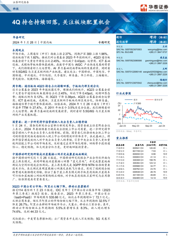 【华泰证券】【20240128】4Q持仓持续回落,关注板块配置机会-20页 行业研究