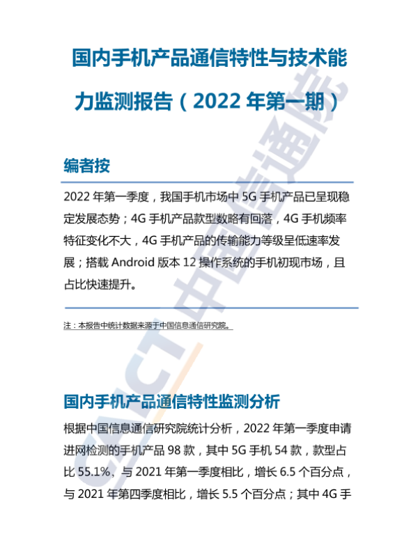 【中国信息通信研究院】【20220101】国内手机产品通信特性与技术能力监测报告(2022年第一期)-7页 行业研究