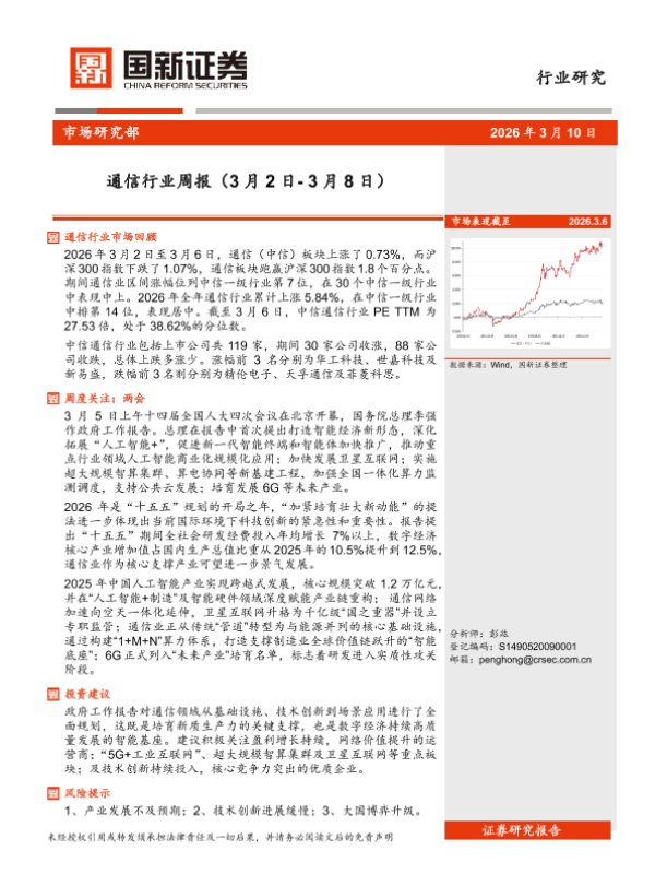 【国新证券】【202603】通信行业周报-15页 证券期货研究报告