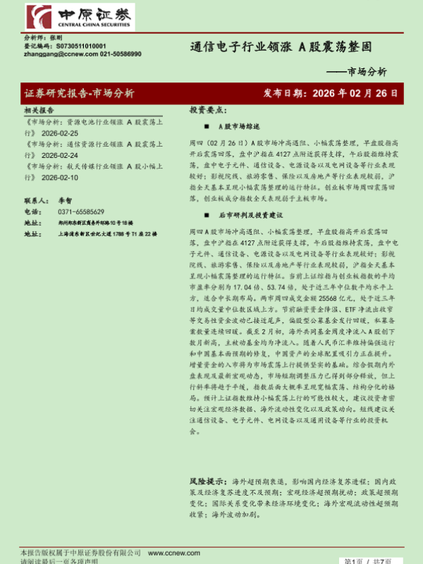 【中原证券】【202602】通信电子行业领涨 A股震荡整固-7页 证券期货研究报告