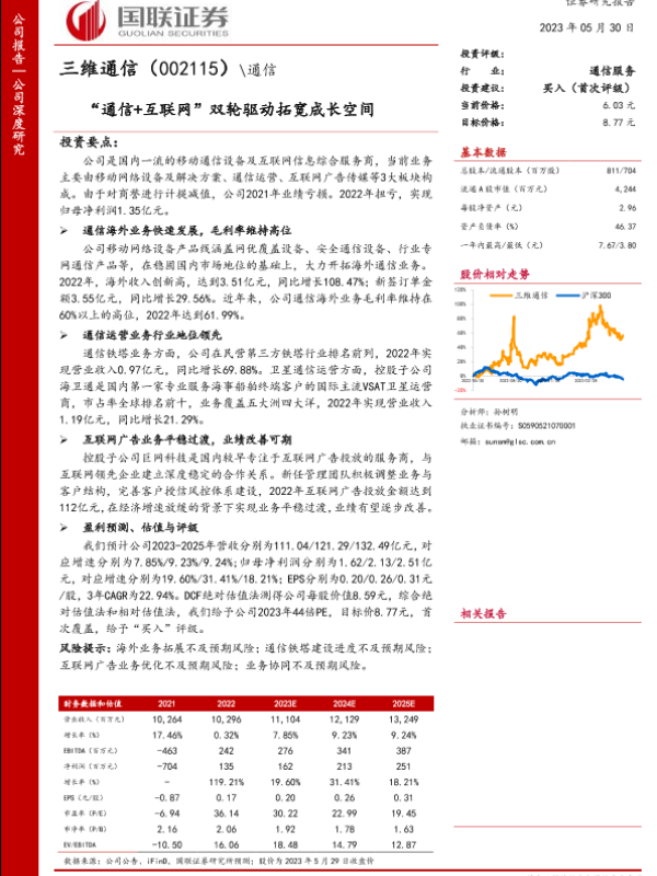 【国联证券】【20230530】三维通信(002115)“通信+互联网”双轮驱动拓宽成长空间-32页 行业研究