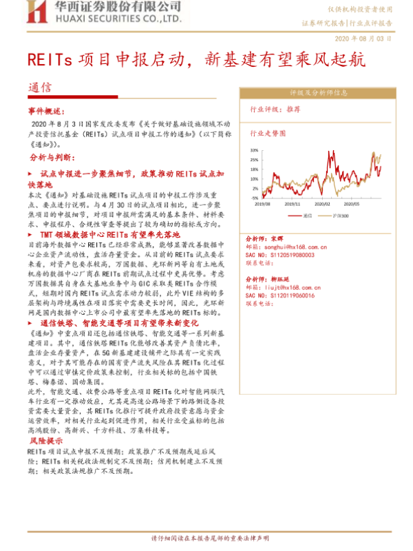 【华西证券】【20200803】通信行业点评报告:REITs项目申报启动,新基建有望乘风起航-7页 行业研究