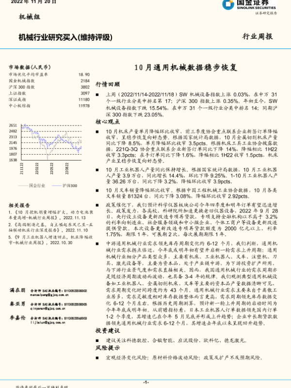 【国金证券】【20221120】20221120-国金证券-机械行业研究:10月通用机械数据稳步恢复-19页 行业研究