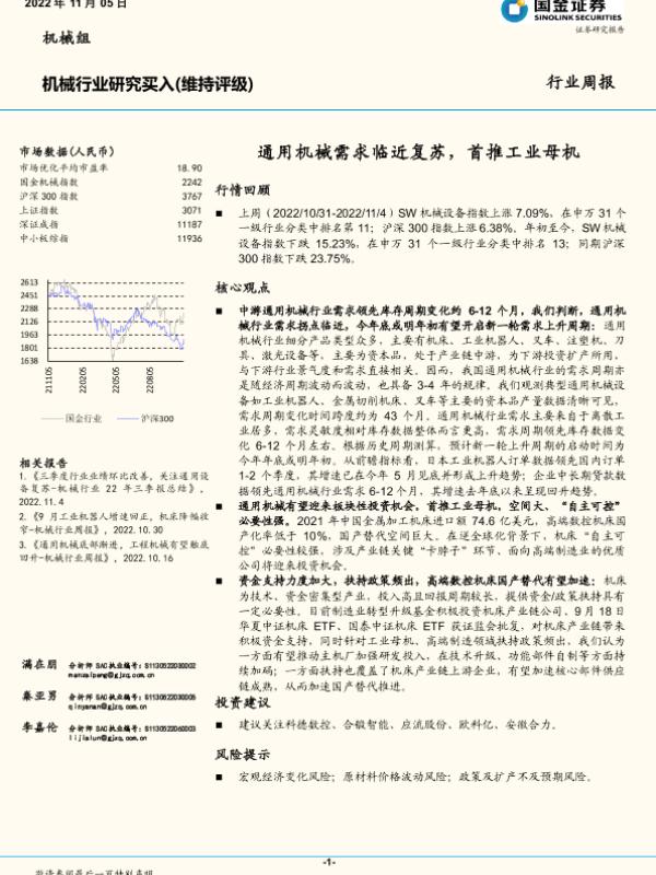 【国金证券】【20221105】20221105-国金证券-机械行业研究:通用机械需求临近复苏,首推工业母机-17页 行业研究