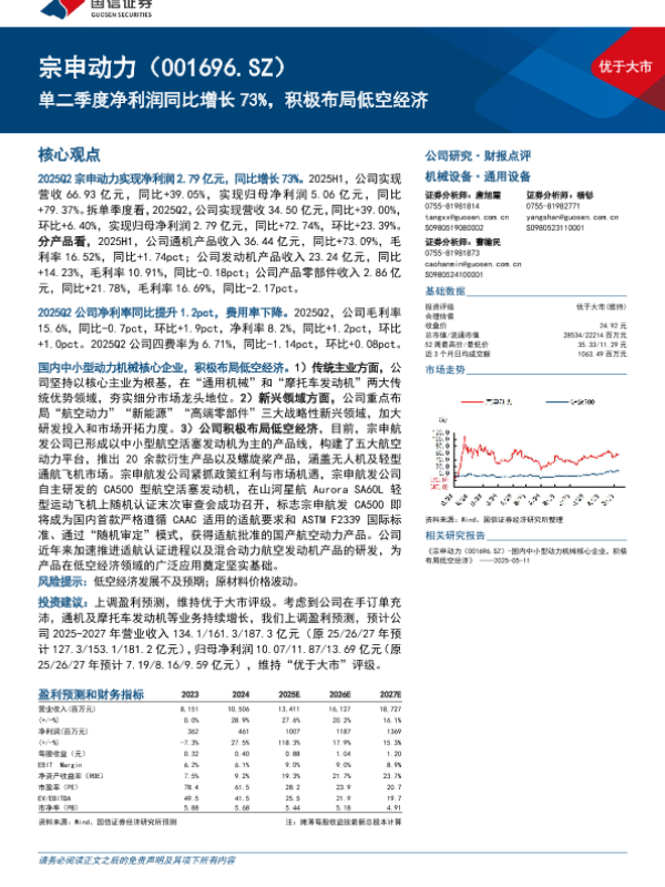 【国信证券】【202509】宗申动力(001696)单二季度净利润同比增长73%,积极布局低空经济-16页 证券期货研究报告