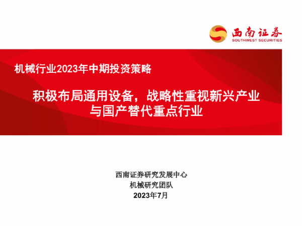 【西南证券】【202307】机械行业2023年中期投资策略:积极布局通用设备,战略性重视新兴产业与国产替代重点行业-75页 行业研究