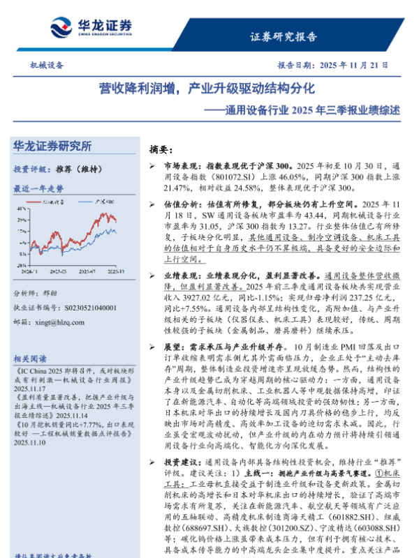 【华龙证券】【2025】营收降利润增,产业升级驱动结构分化——通用设备行业2025年三季报业绩综述-26页 行业研究