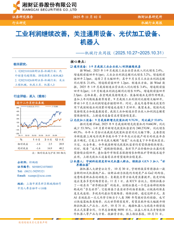 【湘财证券】【202510】工业利润继续改善,关注通用设备、光伏加工设备、机器人-16页 证券期货研究报告