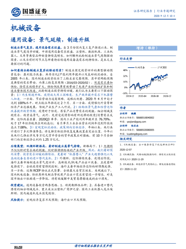 【国盛证券】【20201210】20201210-国盛证券-机械设备行业专题研究:通用设备:景气延续,制造升级-20页 行业研究