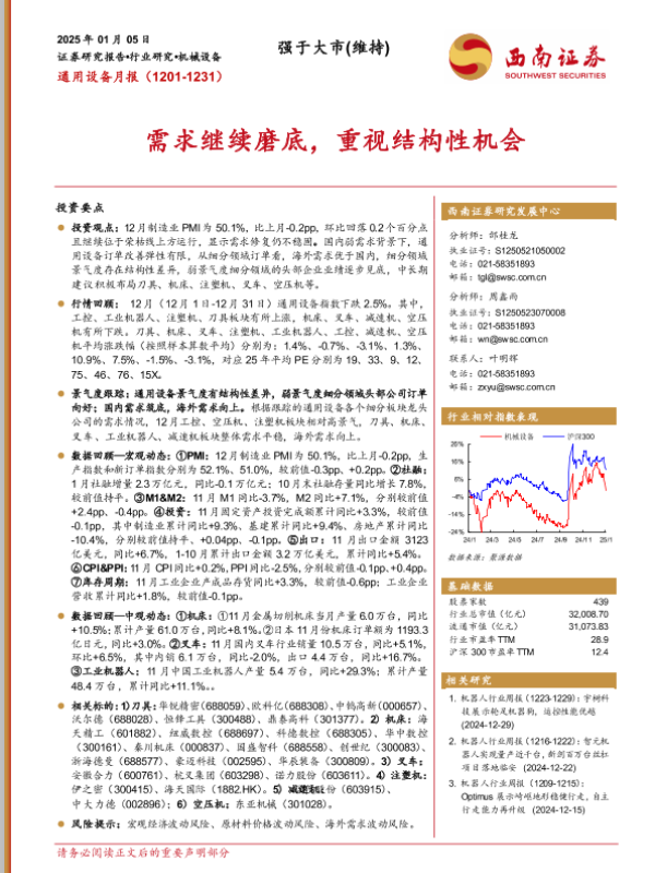 【西南证券】【20250105】机械设备行业通用设备月报(1201-1231):需求继续磨底,重视结构性机会-13页 行业研究